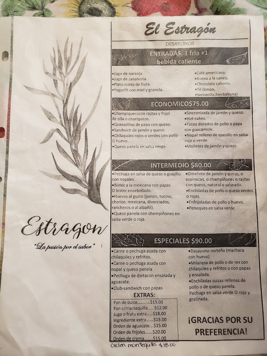 Restaurante El Estragon Menu (2025 Update)